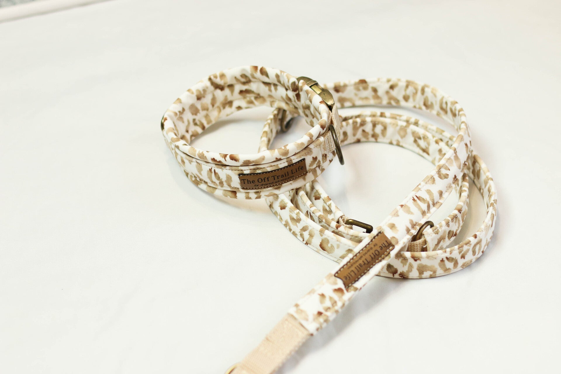 Halsband + Leine 'Creme Leo Paw'
